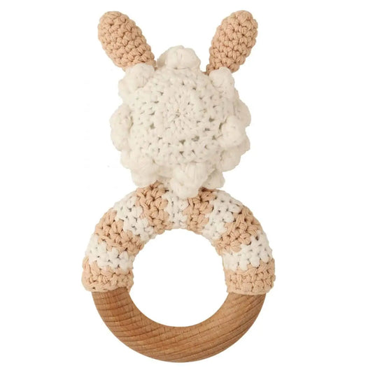 gehäkelter Beißring / Rassel "Schaf", Biobaumwolle