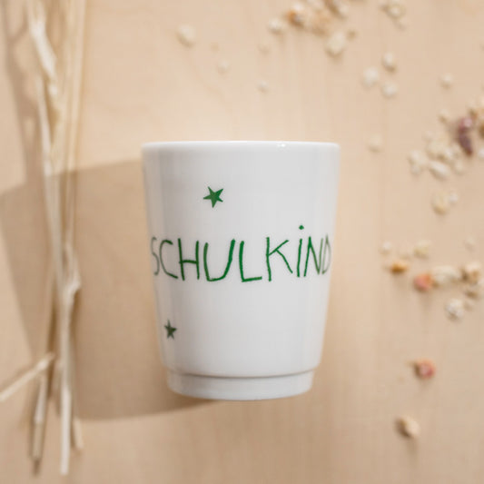 Porzellan Becher "Schulkind", grün